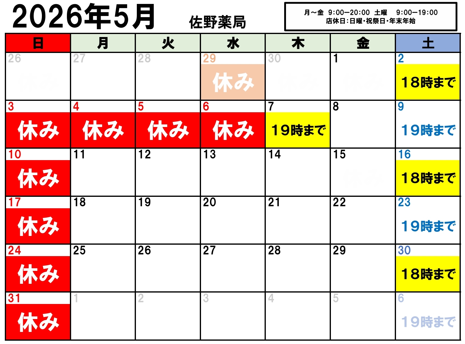 ゴールデンウイーク期間中は当薬局もお休みとなります。